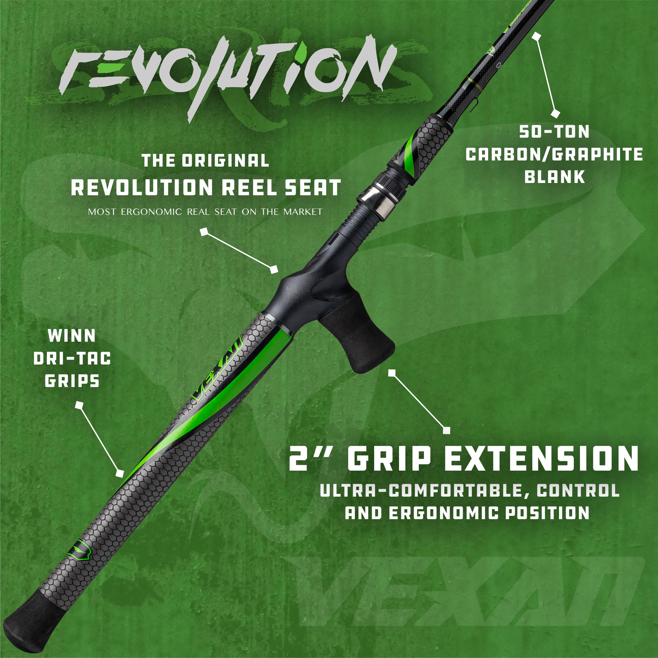 Take your fishing performance to the next level with the Vexan Revolution Series Casting Rod, packed with top-tier features designed for serious anglers. At its core is the 50-ton carbon/graphite blank, delivering exceptional sensitivity and power, so you feel every bite and make every hookset count. The rod is outfitted with custom WINN Dri-Tac grips, crafted specifically for Vexan to provide unmatched comfort and control, even during the longest days on the water.