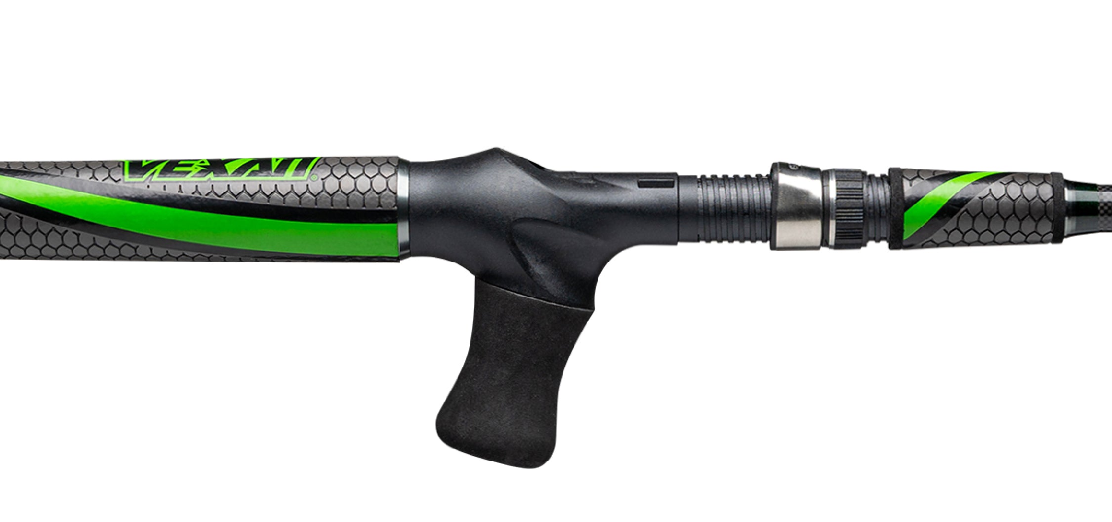 The Vexan Revolution Series Casting Rod also features 316SS ring inserts for smooth line management with both mono and braid, increased casting distance, accuracy, and leverage on those crucial hooksets.